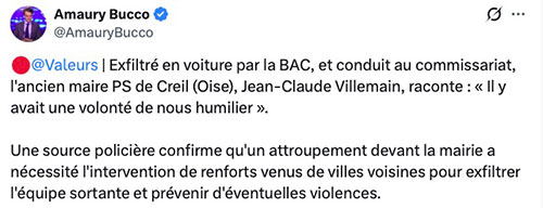 @Valeurs | Exfiltré en voiture par la BAC, et conduit au commissariat, l’ancien maire PS de Creil (Oise), Jean-Claude Villemain, raconte : « Il y avait une volonté de nous humilier ».