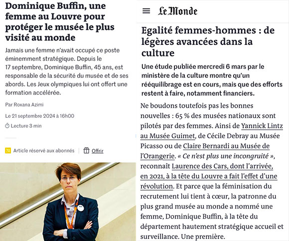 En complément, je joins ce tweet du Monde qui salue la féminisation du recrutement qui semble être, peut-être avant les compétences, une priorité de Laurence des Cars :