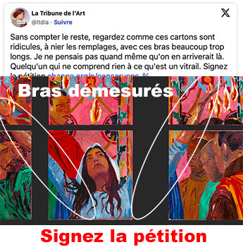 Je veux parler du remplacement de certains vitraux de Viollet-Le-Duc, d’ailleurs épargnés par l’incendie la cathédrale, par des vitraux contemporains.