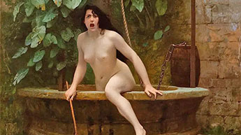 La pauvre Vérité retourne au puits et y disparait à jamais en cachant sa honte.
