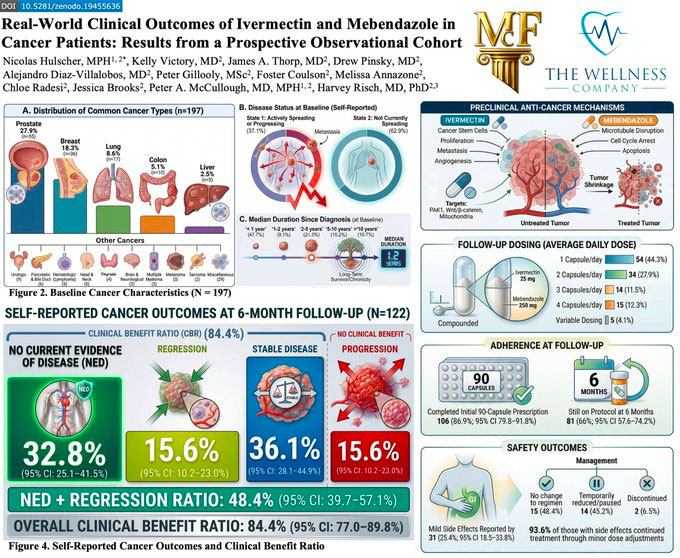 URGENT : Étude la plus importante en conditions réelles sur l’ivermectine + mébendazole chez des patients atteints de cancer montre un bénéfice clinique de 84,4 % — Près de LA MOITIÉ rapportent une disparition du cancer ou une régression tumorale.