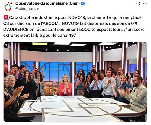 Sauf que la chaine Novo19 est une catastrophe médiatique !